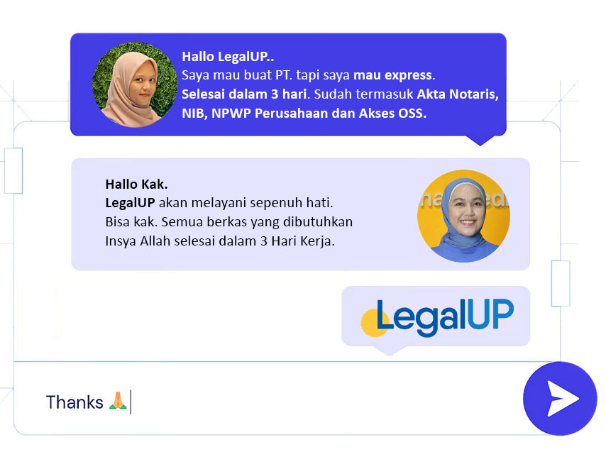100% pengurusan administrasi menjadi urusan LegalUP. Keren kan?